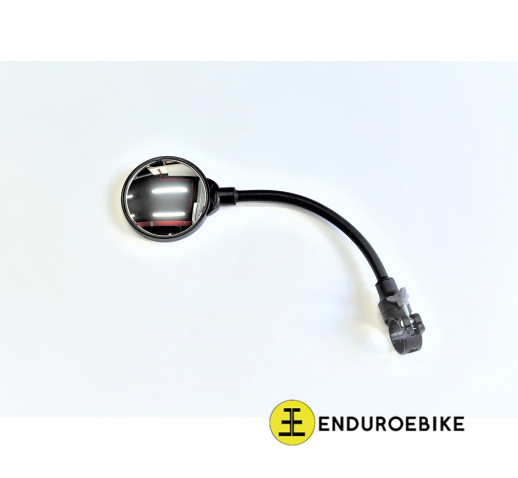 Lightweight mirror for two-wheeled vehicles on a swiveling flexible arm with spherical glass.